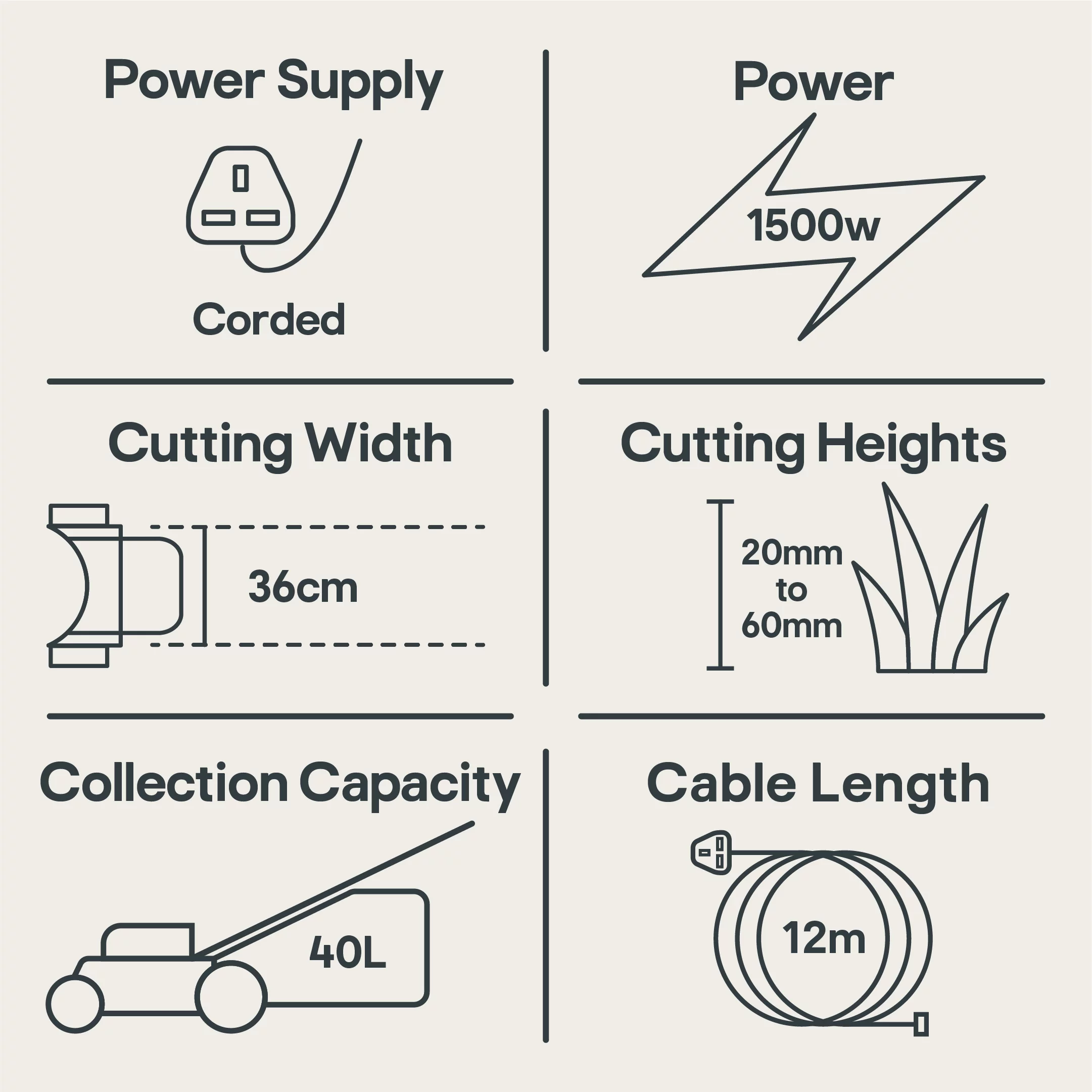 - Quick change cutting heights