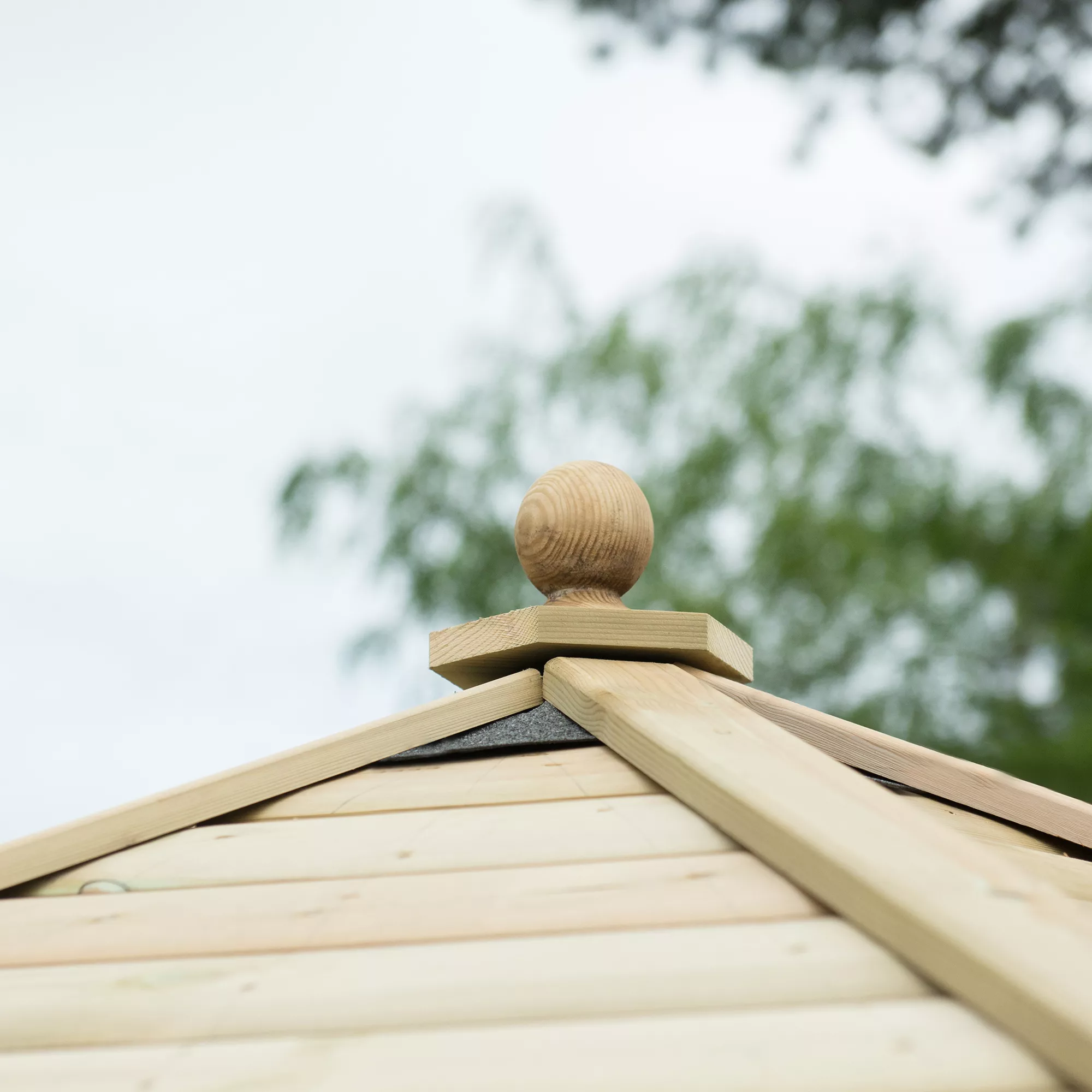 The 5.1m Premium Oval Wooden Gazebo with Timber Roof and Benches from Forest is ideal if you are looking for a different type of structure with even more space. Beautifully made, with a large capacity, they are perfect for more commercial ventures. Suitable for sports clubs, hotels, restaurants and wedding venues, these Gazebos come with 7 bench seats that can comfortably seat up to 22 adults or 29 children. Installation by our professional team is included making these spacious structures an easy, affordable option. All our Gazebo uprights are made from kiln dried, Pressure Treated round Radiata Pine, which has an attractive smooth sanded finish.