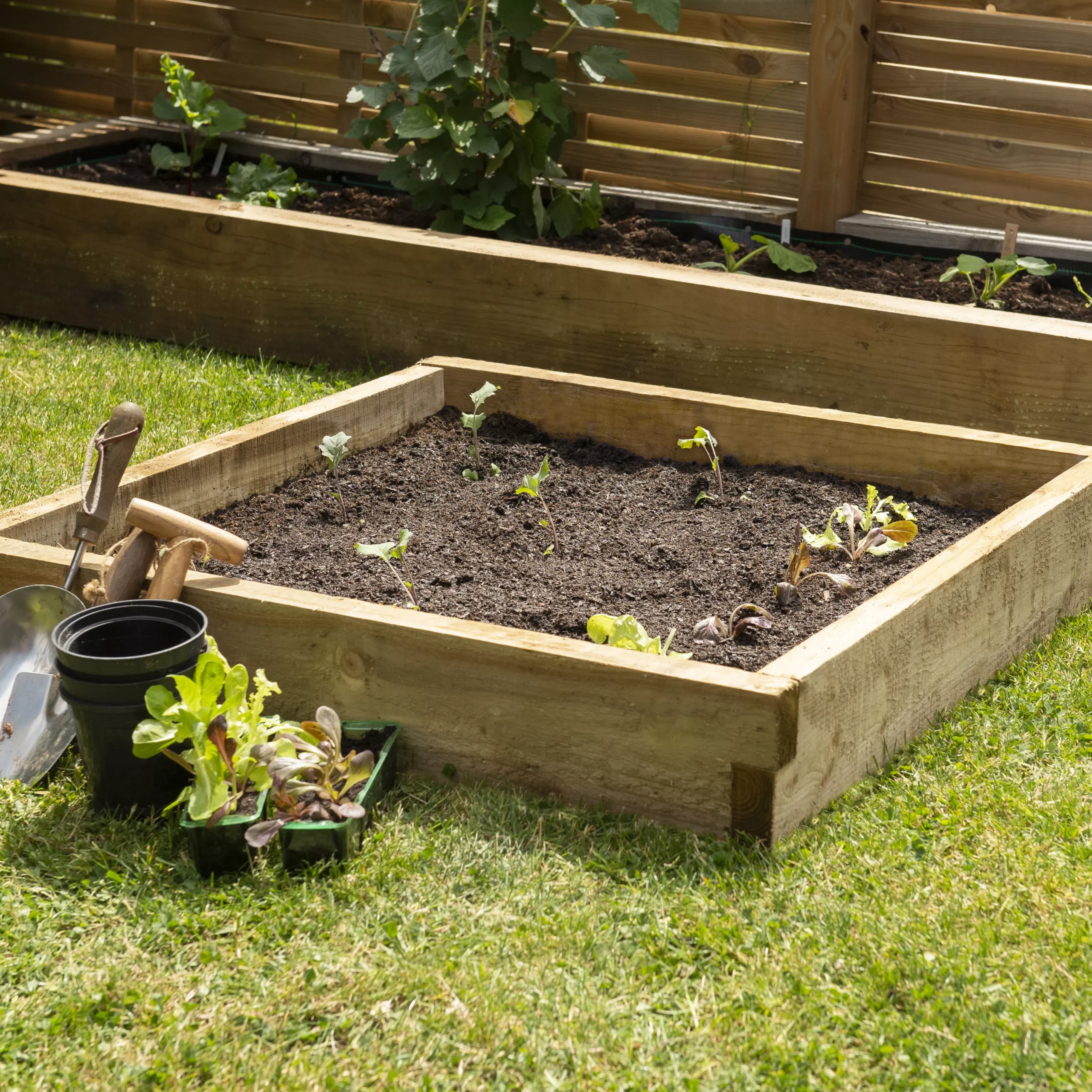 - The raised bed is made using strong 40mm thick timbers that are 140mm deep and have been conveniently notched at the ends so they can be easily assembled together