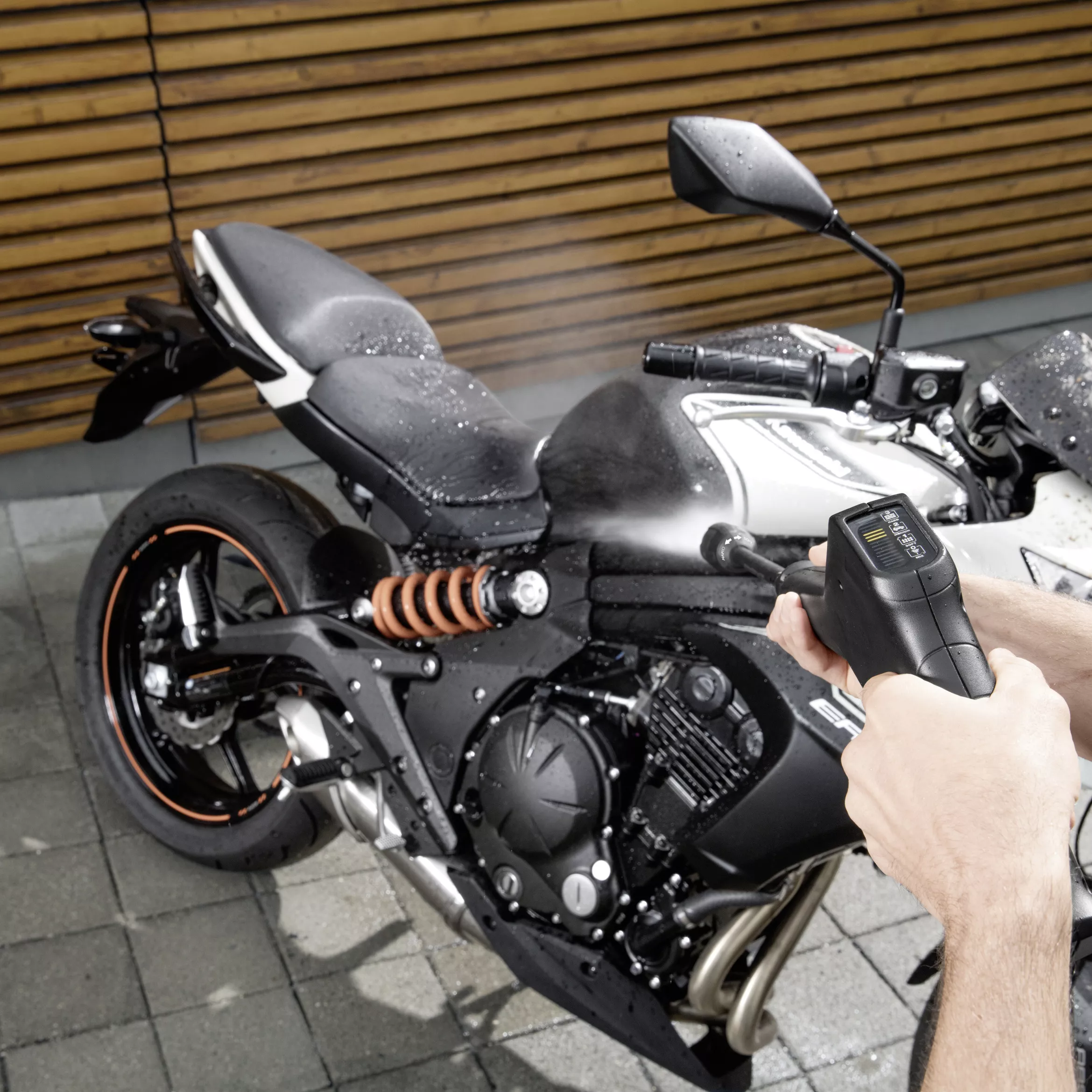 - High pressure washer. For cleaning dirt, mud, muck & grime off surfaces, such as gardening machines & tools, patios, terrace, balcony furniture, fences, garden pathways, motorcycles, scooters, bicycles & external staircases