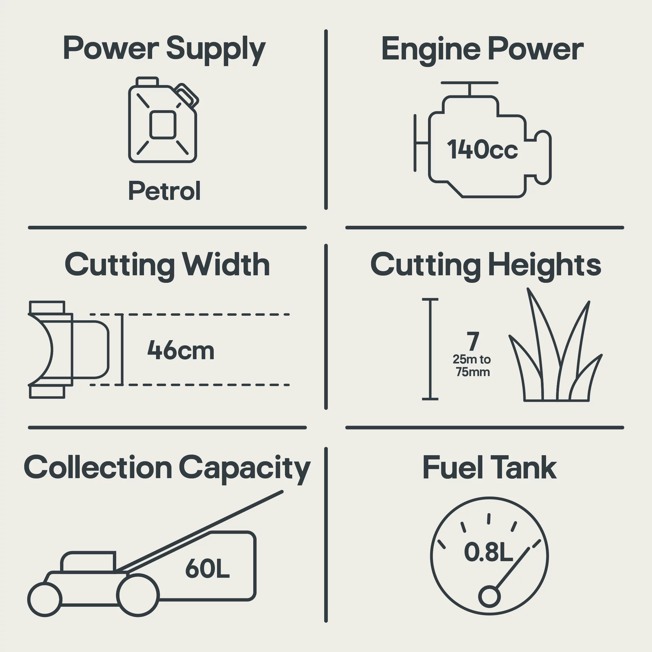| Fuel tank capacity | 0.8L |