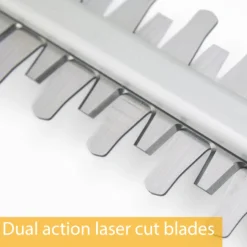 - Hardened steel dual-action laser-cut blades ensure a perfect cut every time