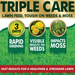 Aftercut Triple Care is a lawn treatment formulated to tackle weeds without herbicides. The added iron creates challenging conditions for moss to thrive. Additionally, the balanced nutrient levels create a healthier lawn that looks greener in just 3 days. Aftercut Triple care is also more sustainable as well as herbicide-free. It has the complete nutrient package including micronutrients.